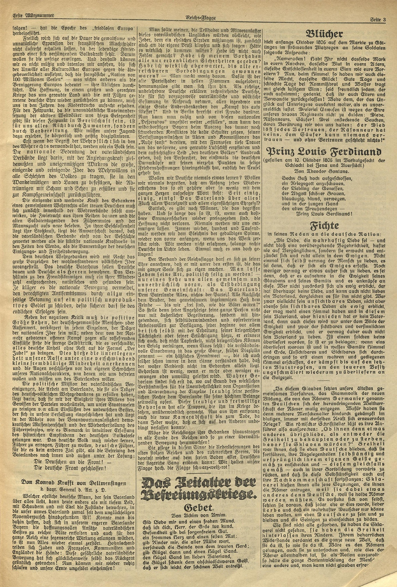 Erste Ausgabe der Verbandszeitschrift "Reichsflagge". vom 1. März 1924. (Bayerische Staatsbibliothek, 2 Eph. pol. 70 i-1/4)