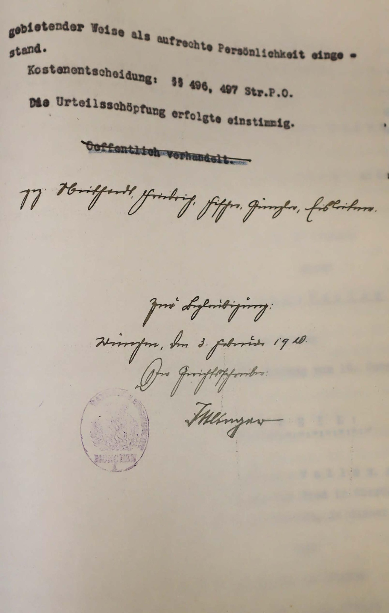 Urteil und Protokoll des Arco-Prozesses vom 16. und 15. Januar 1920. (StAM, 2295/2) HLB