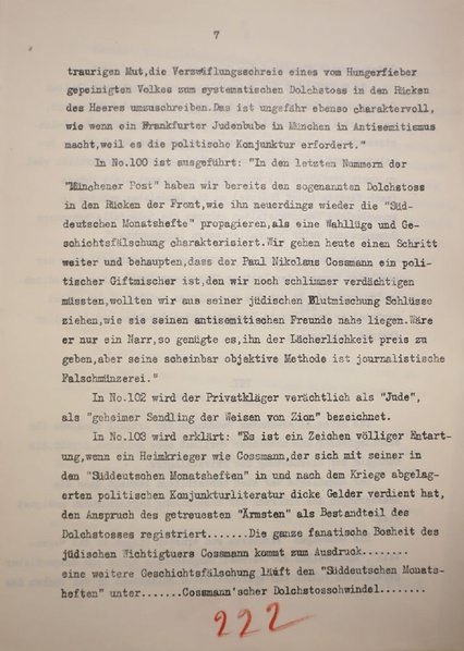 Urteil im Dolchstossprozess 1925. (Staatsarchiv München, AG 69108)